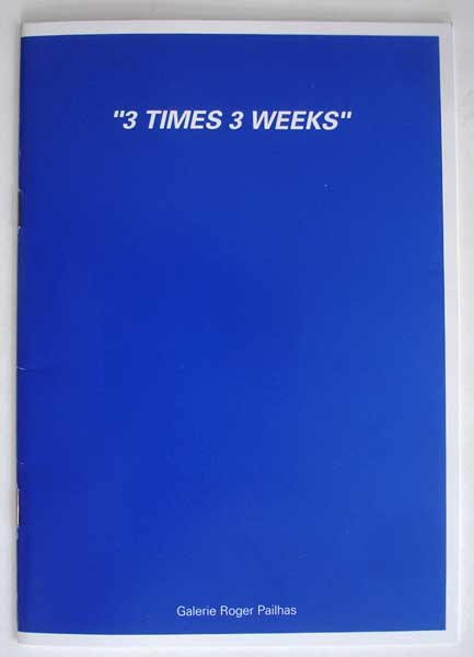 Rainer Ganahl, 3 times 3 weeks, 1993 with introduction by Rainer Ganahl and short texts by Rainer Ganahl, Peter Fend and Sivlia Kolbowski, published by Galerie Roger Pailhas, Marseille 24 page catalog for an exhibiton I have conveived and curated for the gallery in Paris in 1992