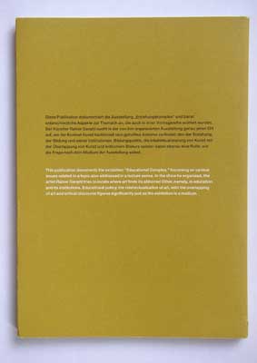 1995, generali foundation, vienna. order from: found.studienraum@generali.at Sabine Breitwieser, Rainer Ganahl (ed.), Erziehungskomplex / Educational Complex, Generali Foundation, Vienna 1997 with texts by Dietrich Karner, Sabine Breitwieser, Rainer Ganahl, Mike Kelley, Ingvild Birkhan, Thomas F. McDonough and Edward W. Said - see table of content above ISBN 3-901107-17-7 see exhibition